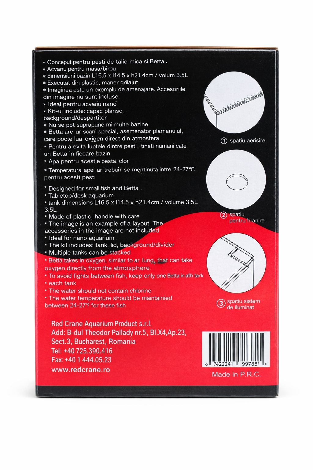 Acvariul Betta Red Crane 3.5L este un recipient compact din plastic transparent, potrivit pentru cresterea pestilor Betta sau pentru utilizare ca mini acvariu decorativ. Designul simplu permite amplasarea usoara in orice spatiu, fiind o optiune practica pentru incepatori sau pentru zone cu spatiu limitat.