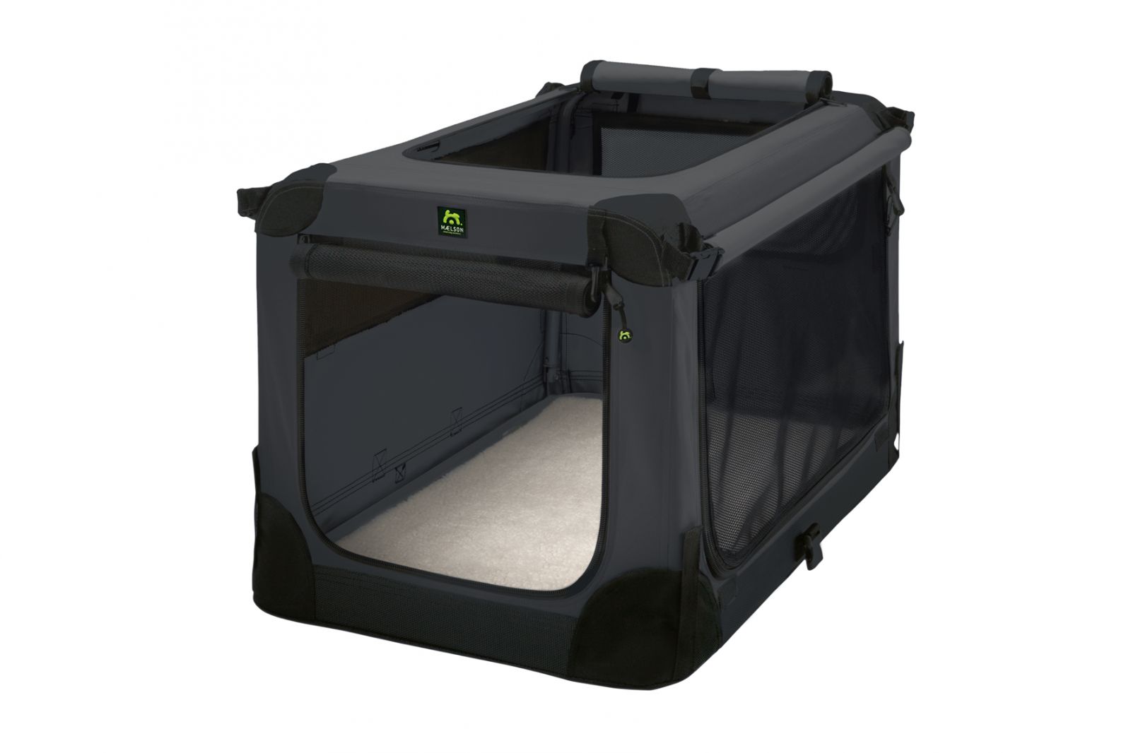 Modelul Soft Kennel 62 anthracite este pliabil si prevazut cu un cadru interior din otel, permitand plierea rapida si utilizarea pentru transportul animalelor.
