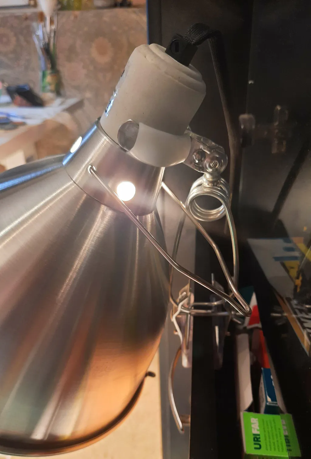 Clamp Lamp-Graphite folosește cel mai bine vândut reflector „deep dome” al nostru pentru a asigura un nivel ridicat de siguranță și o proiecție fantastică a luminii. Setul include, de asemenea, suportul nostru de fixare pentru vivarium și, pentru prima dată, un suport de suspendare ușor de montat. Aceasta înseamnă că Clamp Lamp-Graphite poate fi montat în interiorul unui vivarium cu ușurință și în siguranță. Acum poate fi, de asemenea, agățat cu ușurință peste carcase deschise, cum ar fi mesele cu broaște țestoasă, cu kitul de agățat sau fixat ferm în poziție.