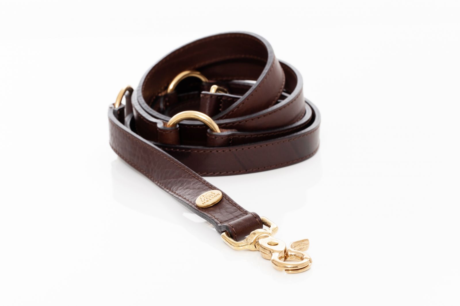 Lesa se ataseaza de zgarda sau ham cu ajutorul carabinierei. Lungimea poate fi ajustata folosind inelele centrale, in functie de necesitate. Curatati pielea conform recomandarilor specifice produselor din piele naturala.