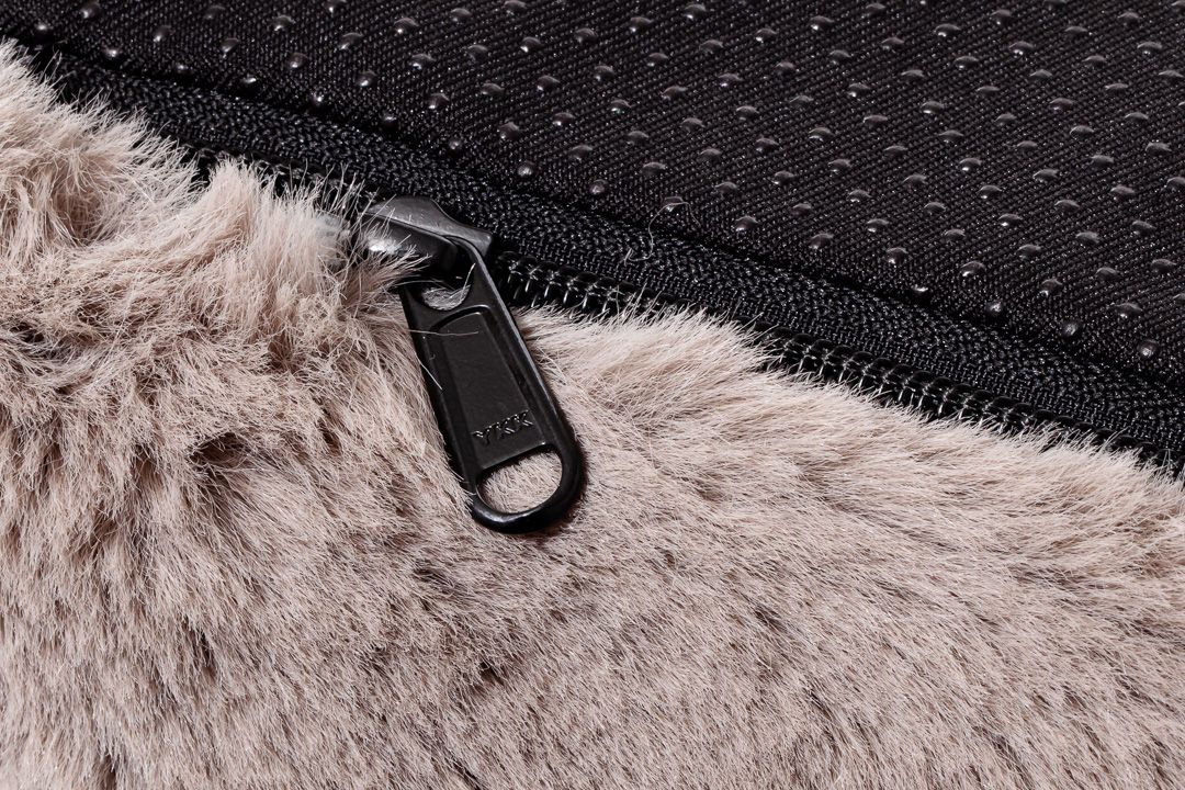 - Husa exterioara din material textil tip faux-fur, moale la atingere